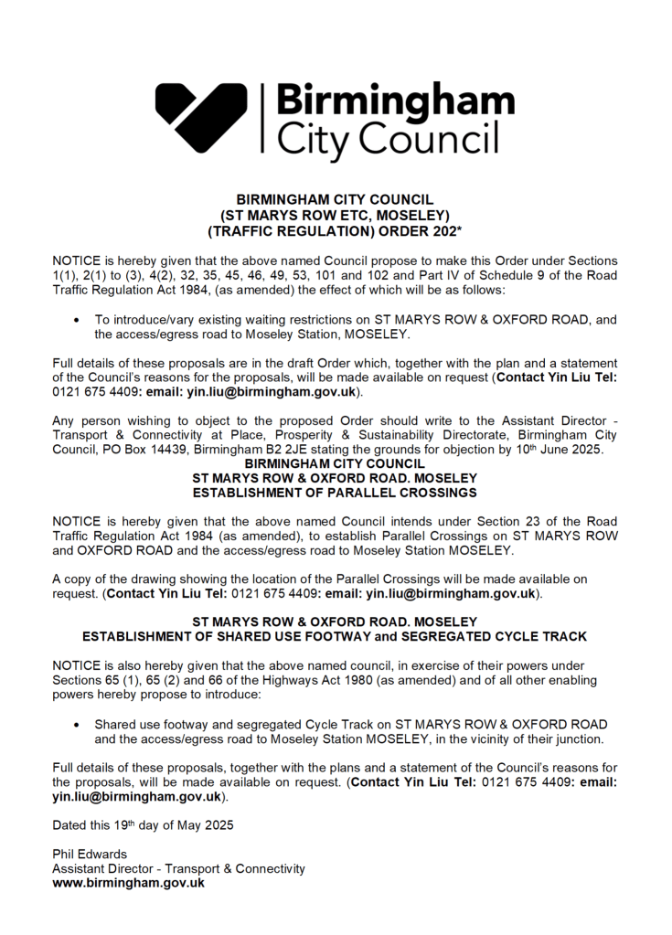If you have any questions about this consultation, or need help understanding the plans, please contact: KingsHeathandMoseleyTRO@birmingham.gov.uk