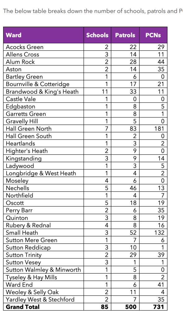 What is quite shocking is how few patrols have taken place outside schools, with zero PCNs issued in Moseley ward in the entire year. We plan to ask a lot more questions about how schools patrols are determined and managed.